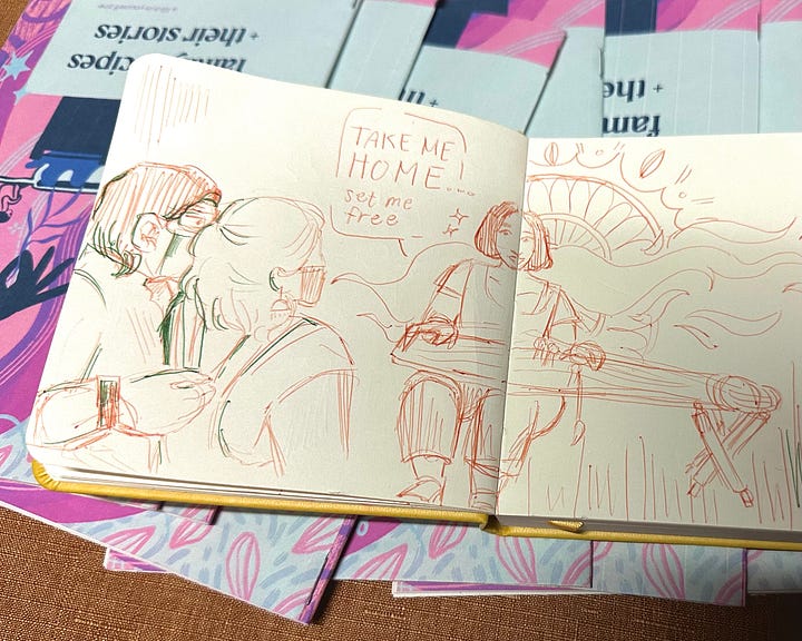 It’s called Tuesday Night Cafe, it happens every other week from April to October, and it was created by the Tuesday Night Project about 26 years ago to highlight Asian American artists and build community in Little Tokyo. The sentence I said most frequently while there: “I started making zines around this time last year and … I haven’t been able to stop.”